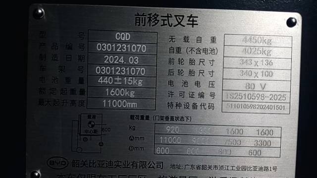 Лот №1: Высотный штабелер (ричтрак) BYD CQD