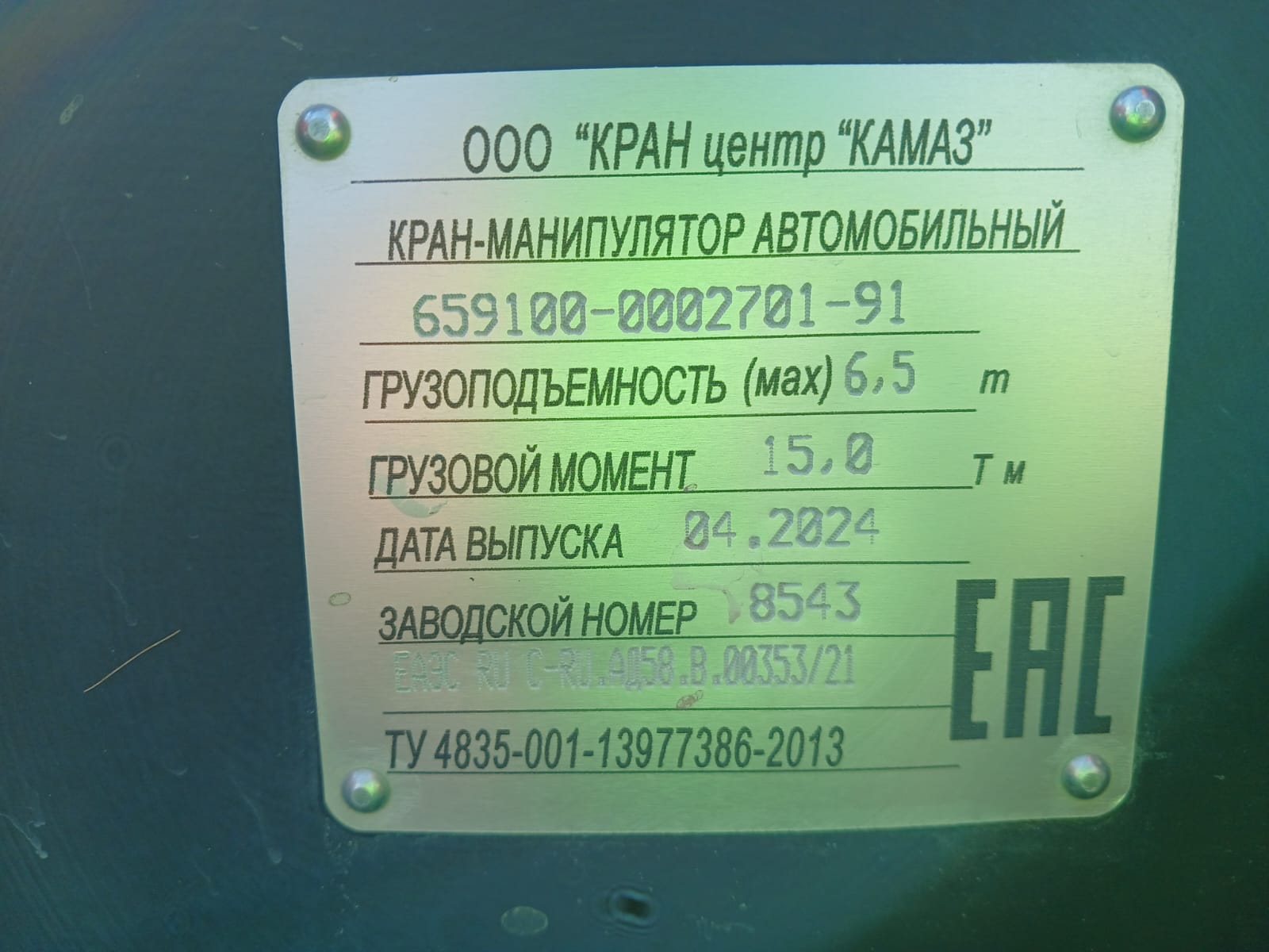 Транспортное средство, наименование: специальный, грузовой бортовой оснащенный краном-манипулятором 659100, шасси на базе КАМАЗ, VIN XDF65910010008909, год изготовления: 2024, ДВС: КАМАЗ, 740.705-300, четырехтактный дизель; ПТС 164301084961684 от 22.03.2024 г. (местонахождение: Ханты-Мансийский Автономный округ-Югра, г. Нижневартовск)